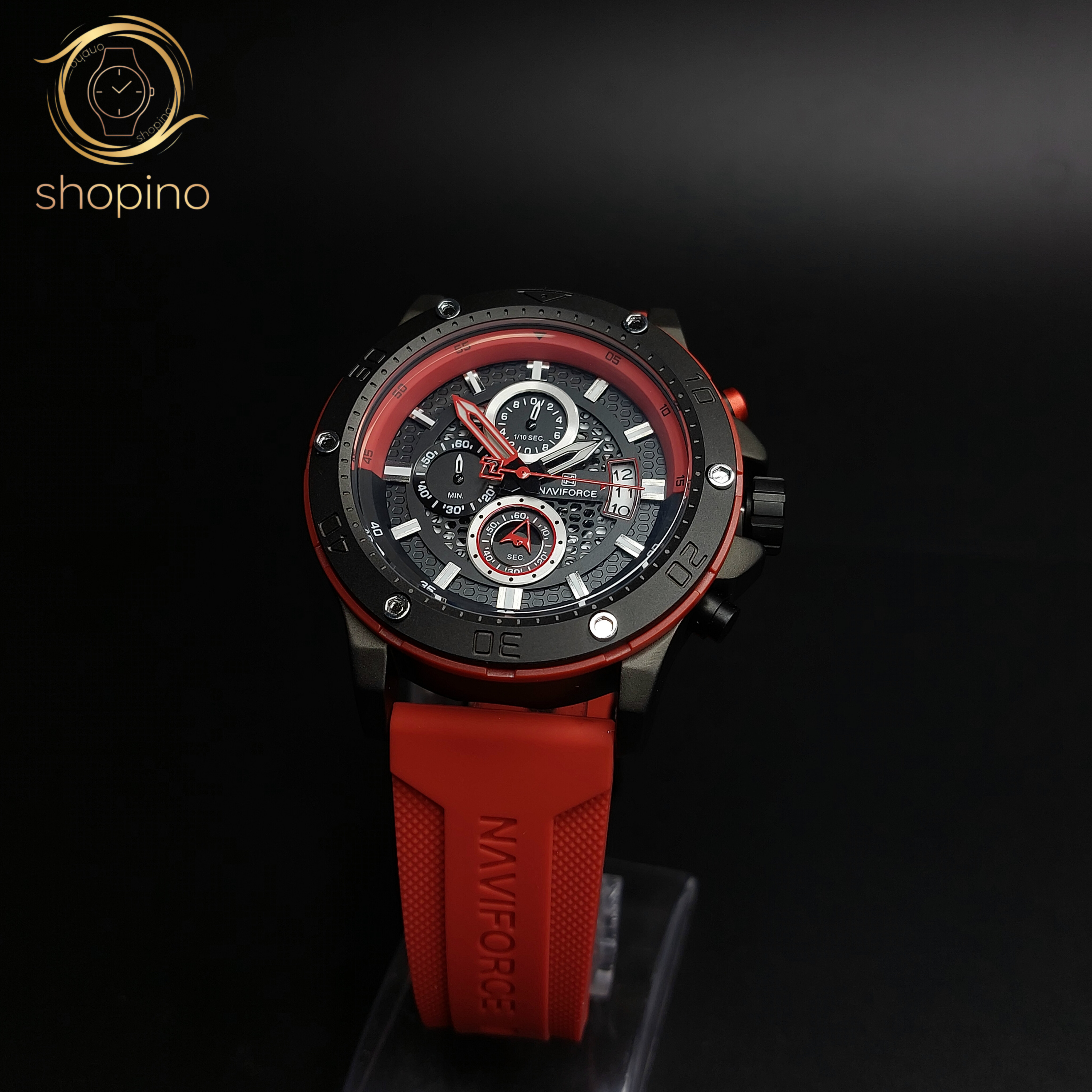 ساعت مچی اورجینال مردانه ناوی فورس|Naviforce|نوی فورس|نیوی فورس سه موتوره کرنوگراف قرمز | قرمز| مشکی| کد رفرنس NF7105-R/B/R