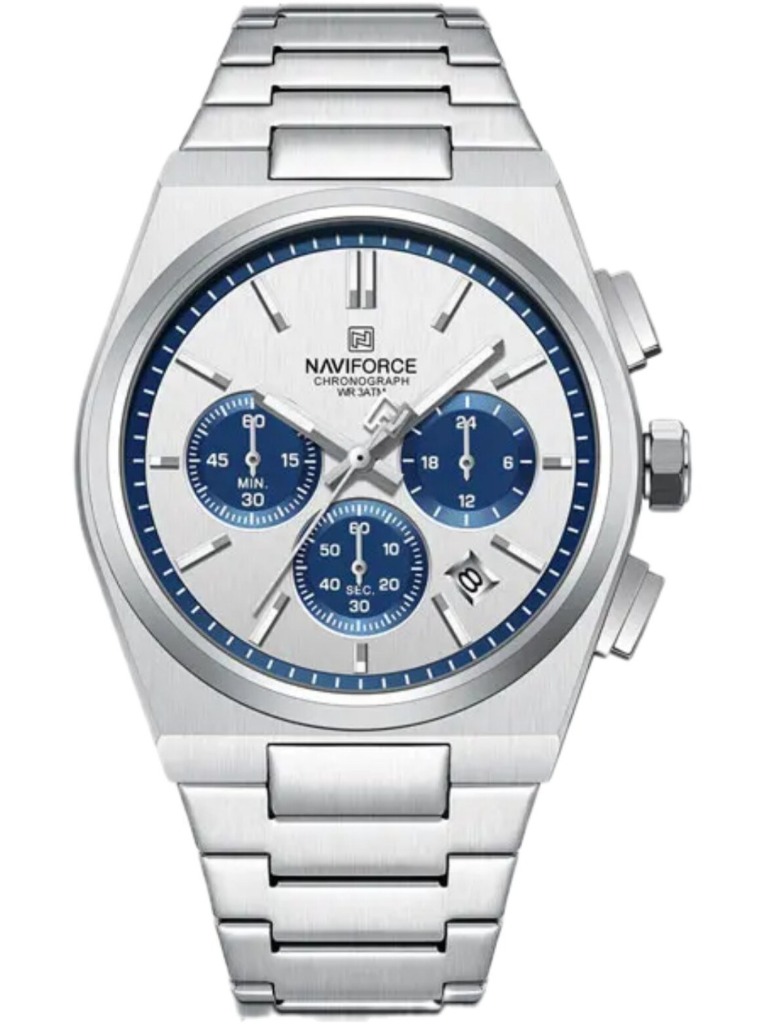 ساعت مچی اورجینال مردانه ناوی فورس|Naviforce|نوی فورس|نیوی فورس سه موتوره کرنوگراف نقره ای-آبی | نقره ای| آبی| کد رفرنس NF8051 S S/BE/S