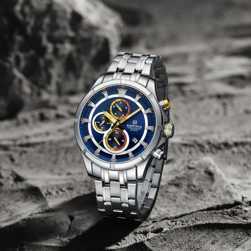 ساعت مچی اورجینال مردانه ناوی فورس|Naviforce|نوی فورس|نیوی فورس نقره ای | نقره ای| آبی کاربنی| کد رفرنسNF8046