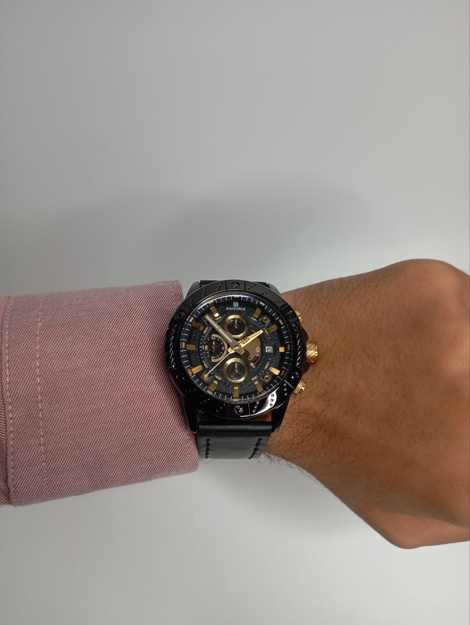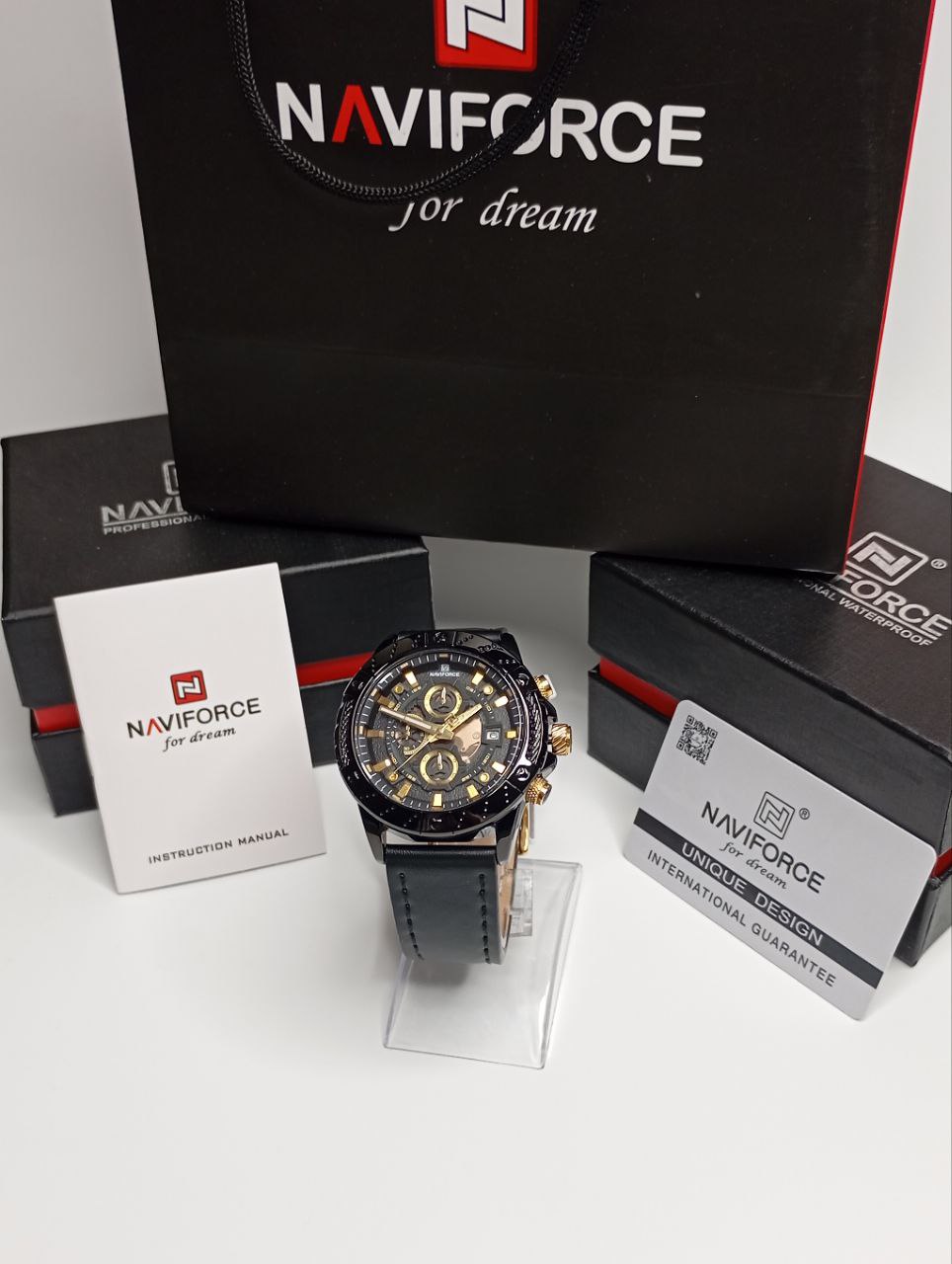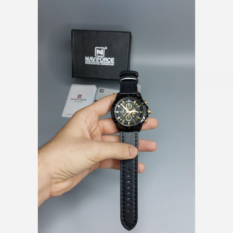 ساعت مچی اورجینال مردانه ناوی فورس|Naviforce|نوی فورس|نیوی فورس سه موتوره کرنوگراف مشکی | مشکی| طلایی-مشکی| کد رفرنس NF8055 B/G/B