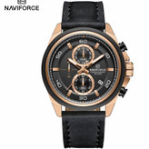 ساعت مچی مردانه نیوی فورس مدل NF8075 بند چرمی مشکی رزگلد سه موتوره