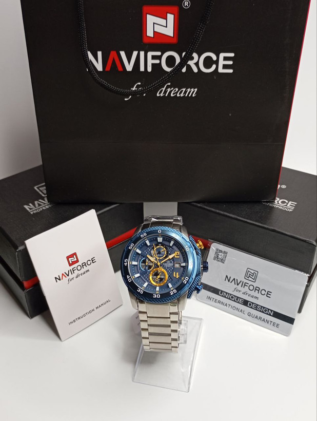 ساعت مردانه نیویفورس مدل NF 8047 S/BE/S یک ساعت اسپرتـلوکس با طراحی چشمنواز: قاب و بند استیل با رنگ نقرهای/بیژ، جزئیات برجسته و عملکرد کرونوگراف، ترکیبی جذاب و باکیفیت را رقم زده است. ویژگیهای برجسته: کرونوگراف دقیق همراه با نمایش تاریخ و زیرصفحهها عقربهها و نشانگر شبنما برای دید بهتر در نور کم بند استیل ضدزنگ با قفل تاشو ایمن برای راحتی و دوام مقاومت در برابر آب تا عمق 30 متر (مناسب استفاده روزمره) طراحی مستحکم با قطر 46.5 mm و ضخامت 14.5 mm، وزن متعادل ~178 g