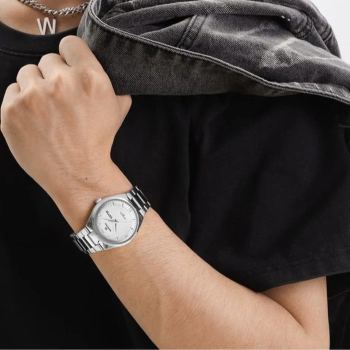 اصالت:اورجینال موتور:کوارتز ساخت ژاپن با کیفیت عالی نمایشگر ساعت:عقربه ای دارای:نشانگر تاریخ و روزهای ماه فرم ساعت:گرد بند:استیل رنگ ثابت جنس شیشه:کریستال معدنی (Mineral Crystal) ابعاد ساعت ضخامت قاب: 9.5 میلیمتر طول بند: 250 میلیمتر عرض بند: 22 میلیمتر قطر صفحه: 38.5 میلیمتر وزن:108 گرم میزان مقاومت:3ATM (در حد دست و صورت شستن)