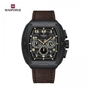 ساعت مچی مردانه نیوی فورس مدل Naviforce NF 8053 B/Y/D.BN با طراحی صنعتی و مقاوم، گزینهای مناسب برای علاقهمندان به ساعتهای اسپرت و مقاوم است. --- ⌚ مشخصات فنی نوع حرکت: موتور کوارتز کرنوگراف جنس قاب: آلیاژ روی با طراحی صنعتی و برجستگیهای شبیه پیچ شیشه: شیشه معدنی مقاوم در برابر خطوخش بند: چرم طبیعی با قفل سگکی، نرم و قابل تنظیم قطر قاب: 46 میلیمتر ضخامت قاب: 15 میلیمتر عرض بند: 26 میلیمتر طول کلی بند: 260 میلیمتر وزن: 97 گرم مقاومت در برابر آب: تا عمق 30 متر (3ATM) – مناسب برای شستوشوی دست و باران سبک ویژگیهای اضافی: نمایش تاریخ، روز هفته، عملکرد کرنوگراف، نور شب (شبرنگ) رنگبندی: ترکیب مشکی، زرد و قهوهای (B/Y/D.BN)