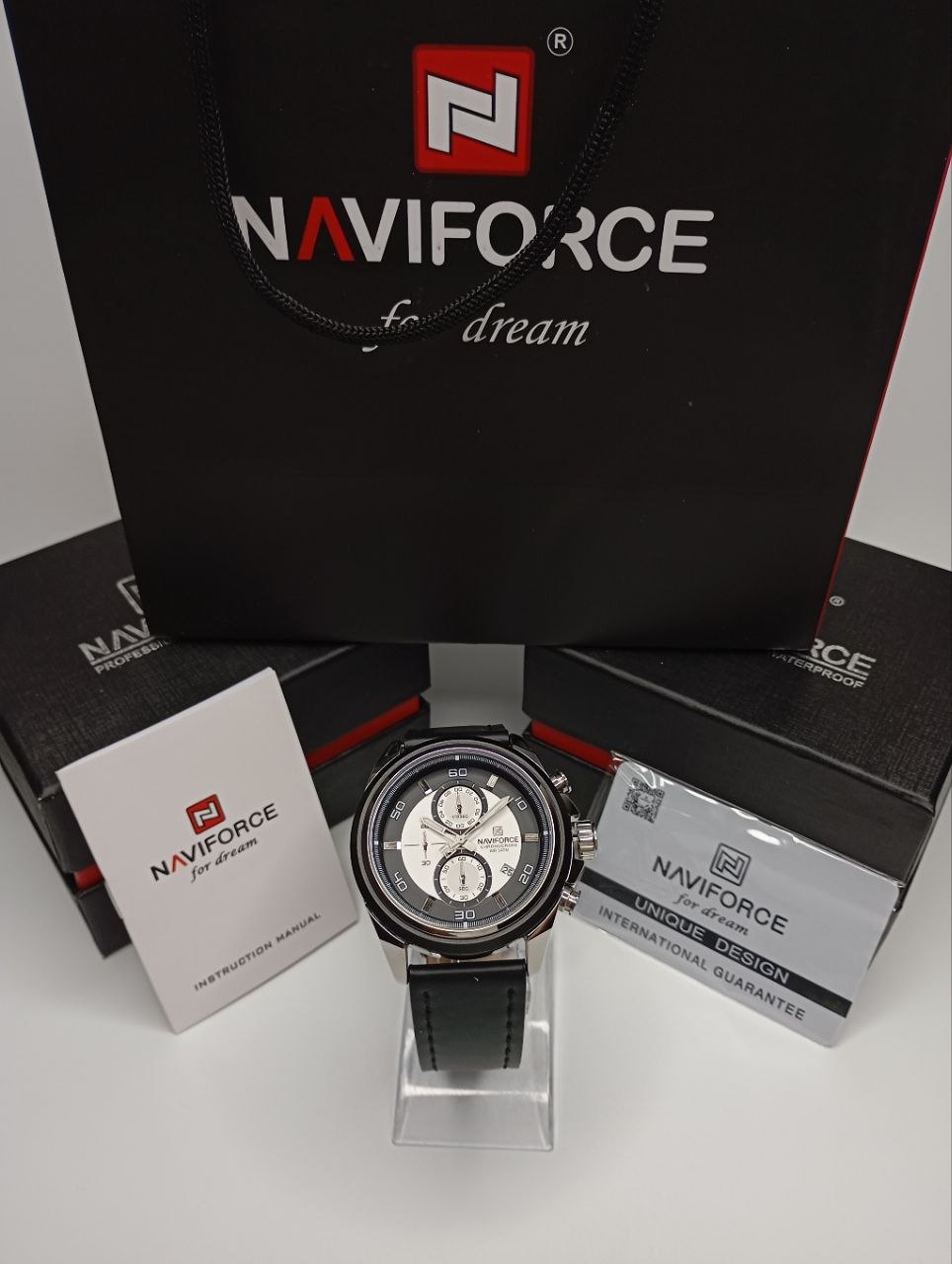ساعت مچی اورجینال مردانه ناوی فورس|Naviforce|نوی فورس|نیوی فورس سه موتوره کرنوگراف نقره ای | مشکی| نقره ای-مشکی| کد رفرنس NF8075 S/W/B