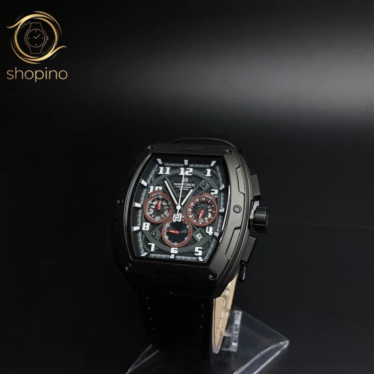 ساعت مچی اورجینال مردانه ناوی فورس|Naviforce|نوی فورس|نیوی فورس سه موتوره کرنوگراف مشکی | مشکی| مشکی| کد رفرنس NF8053 B/W/B