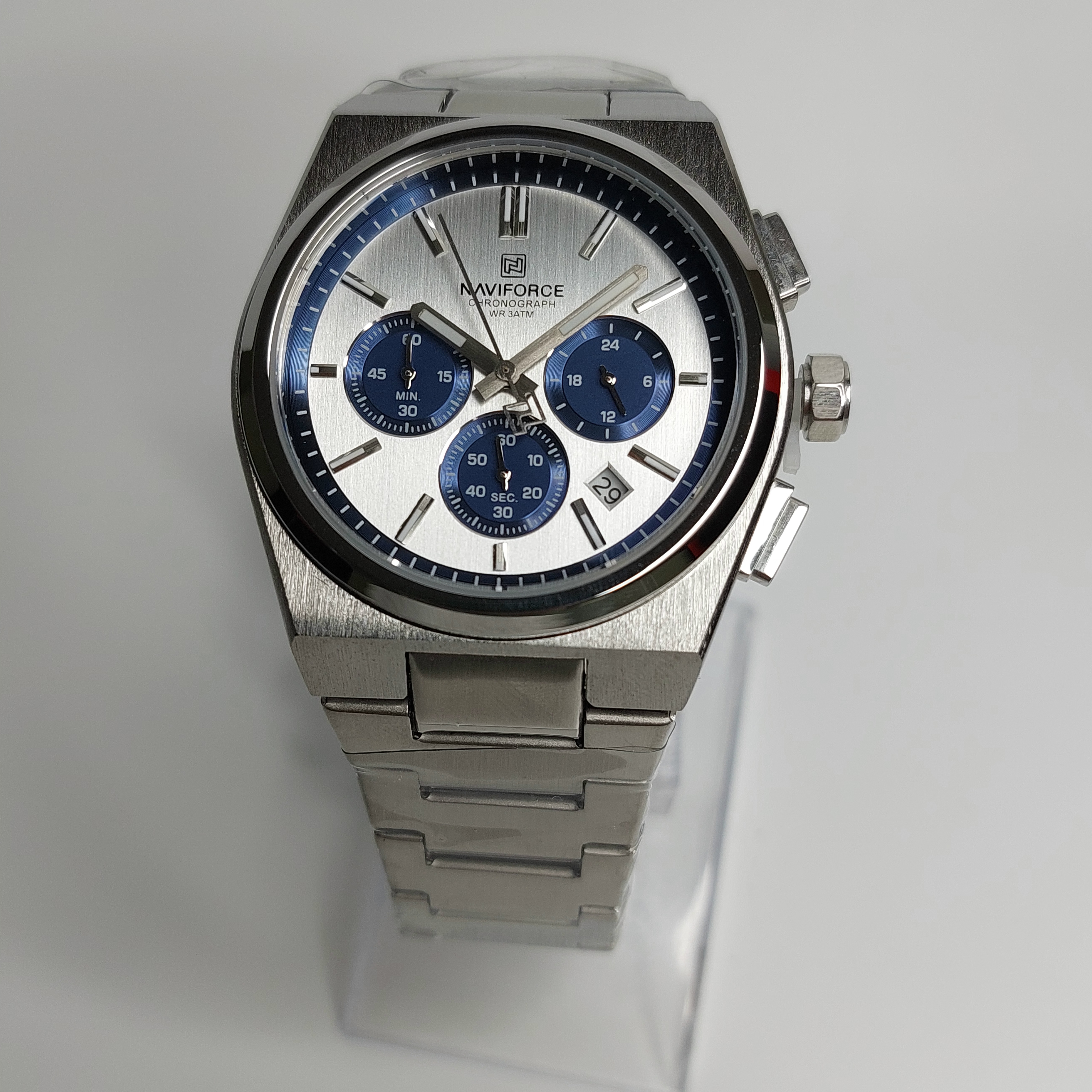 ساعت مچی اورجینال ناوی فورس مردانه سه موتوره کرنوگراف نقره ای | نقره ای | آبی | کد رفرنس NF8048-S/BE/S